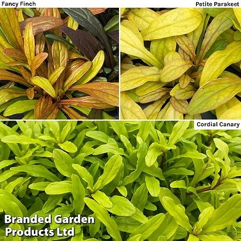 - Ajuga Feathered Friendsâ„¢ ‘Cordial Canary’ – bright gold foliage – a gold-leafed form of the ever-popular Ajuga ‘Chocolate Chip’.