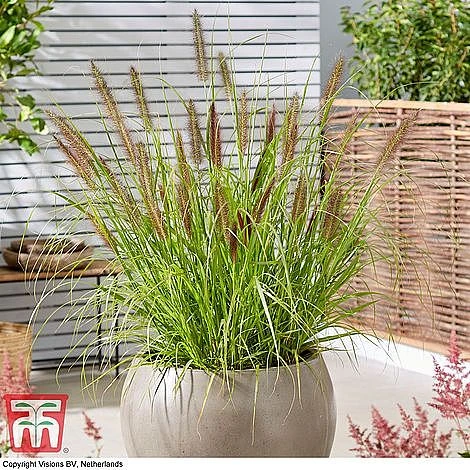 - Pennisetum alopecuroides ‘Black Beauty’ – Fluffy bottlebrush flowers are borne above an arching mound of slender green foliage. Height and spread: 100cm (39″).