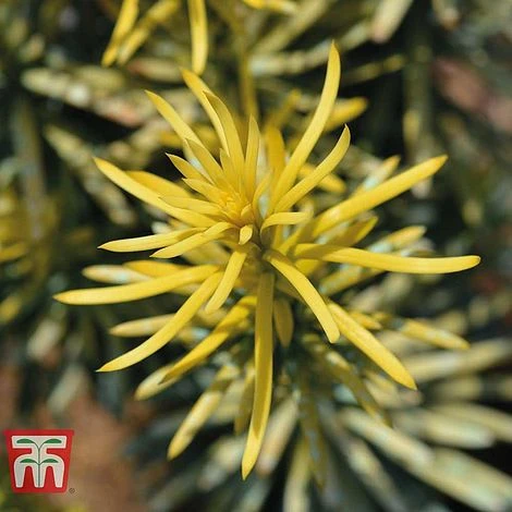 This slow growing conifer has a Yew-like appearance, with long gold-tipped needles that mature to green in winter. Cephalotaxus harringtonia ‘Korean Gold’ is a columnar variety with a compact narrow growth habit that forms a golden exclamation mark in the garden! Commonly known as Plum Yew it enjoys a cool, moist position and makes a useful specimen plant for shaded woodland areas. It also responds well to hard pruning making it suitable as an evergreen hedging plant. Over time it makes a majestic specimen, but will require patience, growing to just half its mature size in around 15 years. Height: 3m (10′). Spread: 2m (6′).