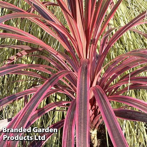 Cordyline ‘Southern Splendour’ bears sword-shaped variegated leaves coloured olive green and bright pink. When mature, Cordylines develop into small, palm-like trees and make excellent focal points as container grown or border specimens and combine well with vibrantly coloured perennials. These low maintenance, evergreen shrubs are perfectly hardy in milder parts of the UK and are a popular choice in coastal gardens as they tolerate salt air, dry soils, and exposed sites. Height: 4 metres (13’). Spread: 1.5 metres (5’).