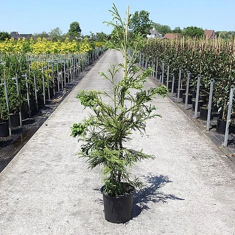 Striking, cockscomb-like growth adds an unusual twist to this variety of Japanese Cedar. Cryptomeria japonica ‘Cristata’ bears an attribute known as ‘fasciation’ that causes flattening and distortion of the stem tips. The crested growth is scattered throughout and sometimes grows as large as a hand. Despite its modern looks, this slow-growing cedar is actually an old Japanese cultivar dating from before 1900 and is one of the most vigorous varieties displaying fasciated growth. Eventually growing into a slender, conical tree with upturned branches and dense, bright green foliage, it makes an eye-catching specimen. ‘Cristata’ takes pruning well and makes an excellent subject for topiary or bonsai. Height: 4m (13ft). Spread: 2m (6.5ft) in 10yrs.