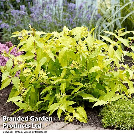 Diervillas are becoming increasingly well-known in the U.K for their versatility, drought tolerance and a tough constitution that belies their elegant looks. This has motivated plant breeders to develop more garden-worthy varieties, and Diervilla ‘Honeybee’ is one of the best, with striking golden foliage that sets it apart from the usual purple-leaved forms, creating a striking colour accent in the landscape. This compact, deciduous shrub retains its golden colour from spring until autumn, when the foliage develops a copper-red glow. In addition, in early summer it produces clusters of nectar-rich, fragrant yellow flowers that bees and butterflies go mad for! So it’s great for wildlife too! Low growing, it is perfect for low-maintenance front gardens where it will cope with challenging dry soils and thrive in sun or partial shade. Alternatively, plant it into a large pot and use it to brighten up a shady corner on the patio. Height: 80cm (31in). Spread: 100cm (39in).