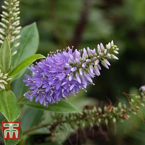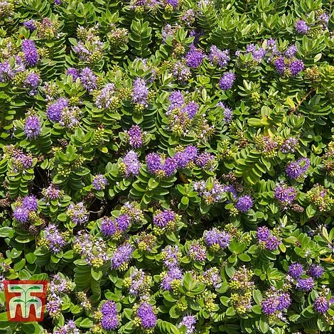 This compact, evergreen shrub brings plenty of colour to sunny borders. New foliage emerges a dark claret-red colour before slowly maturing to grey-green. The bright red stems produce loose spikes of purple flowers throughout summer which are a magnet for pollinating insects. With a low, spreading habit, Hebe ‘Mrs Winder’ makes a fine addition to rockeries, gravel gardens and sunny, free draining borders. Perfect for wildlife gardens and a great choice for a coastal location. Height: 100cm (39″). Spread: 150cm (59″).