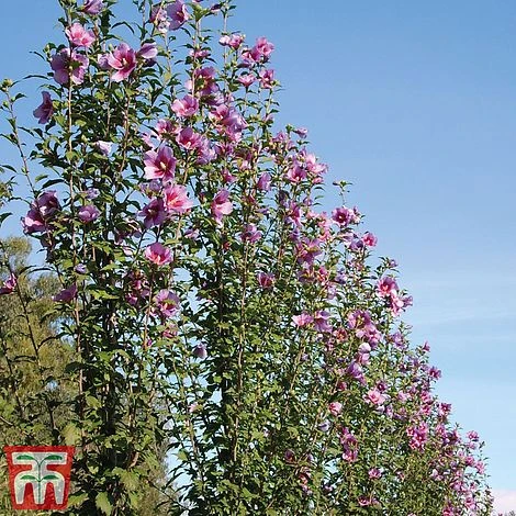 Rose of Sharon always puts on a great display and this cultivar is no exception! From late summer into autumn the showy mauve-blue flowers bring an exotic feel to your garden with their tropical colouring. As the name suggests, Hibiscus syriacus ‘Purple Pillar’ has a uniquely columnar habit that sets it apart from other hardy Hibiscus. The perfect choice for the back of narrow borders, planted as a screen or even in a container – in fact anywhere where space is at a premium! Easy to grow and maintain, but this deciduous shrub will appreciate a long, hot summer to produce the best display. Height: 2m (79″). Spread: 60cm (24″).
