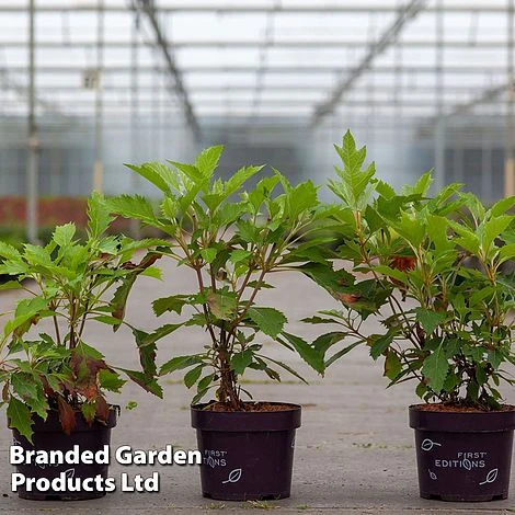 A more compact version of oak-leaved hydrangea that suits smaller gardens and containers, Hydrangea quercifolia ‘Ice Crystal’ only grows to just over a metre on maturity. This deciduous shrub bears white conical flower panicles from July to September against a background of deeply lobed foliage that takes on red and purple tones in the autumn. Oak-leaved hydrangeas are resilient, low-maintenance shrubs that require very little pruning and thrive in sun or light shade. They make excellent subjects for mixed borders or woodland areas and established specimens are more drought tolerant than Hydrangea macrophylla. Height and spread: 1-1.2m (39-47in).