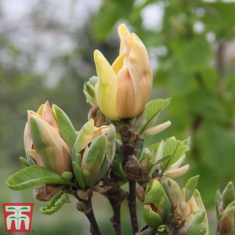 Magnolia ‘Sunspire’ is a naturally upright variety forming a columnar shape with maturity. The large showy blooms are borne late in the season, from April to May, avoiding almost all risk of frost damage. Large, tapered buds open to reveal a glorious display of golden petals that will brighten the garden in spring. This deciduous Magnolia makes a splendid specimen shrub for a spring focal point in the garden. Height: 4m (13’). Spread: 2.5m (8’).