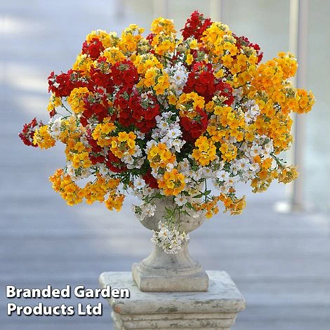 Create the perfect summer container display with three colours in one plug! Each single plug will produce a trio of red, yellow and white flowers with matching yellow eyes. Each variety has been carefully trialled and selected to produce the ideal combination with perfectly matched growing habits and vigour. Nemesia ‘Trio Mio Alegria’ is the ultimate in fuss-free gardening, creating beautiful pots and baskets in one ready-made combination. Height and Spread: 30cm (12in).