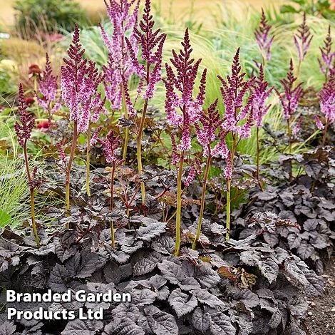 Astilbe is a damp-loving, shade-tolerant perennial that is perfect for providing late summer colour in moist sites, even growing happily as a marginal in a pond or stream where its feet remain permanently wet. In late summer, elegant feathery plumes of flowers are produced above clumps of divided leaves. The flowers are highly attractive to pollinating insects making Astilbe an excellent choice for a wildlife bog garden. The feathery flowers are also superb as fresh or dried cut flowers.