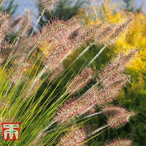 Fountain Grasses will always add a certain elegance to any garden, large or small. The evergreen leaves arch gracefully back to allow the tall stems of the flower heads to push upwards. Atop each stem appear long, feathery plumes, each flushed with black, which will catch the wind and add movement to your display, or, if standing still will be an interesting and delicate architectural plant. Very easy to grow, Pennisetum viridescens, require very little looking after and can be used either as a specimen plant or as part of a grasses collection. Height: 100cm (39″). Spread: 100cm (39″).