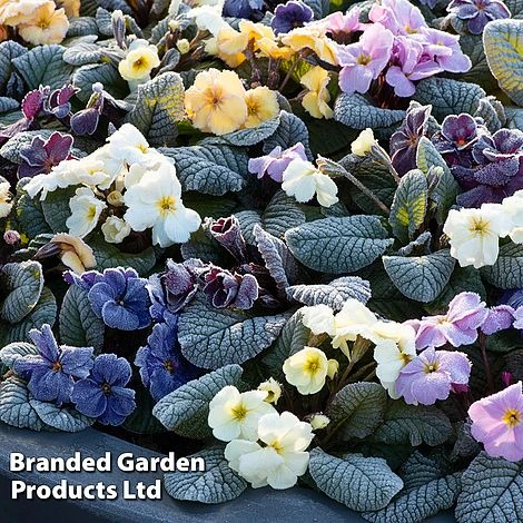 Distinctive dark foliage creates a stunning contrast to the luxurious, velvety colours of Primrose ‘Obsidian Mixed’. These exceptionally hardy primulas form neat mounds of compact foliage, performing flowering fireworks from winter to early spring in an array of shades from jewel-like purples and violets to pale rose, yellow and peach. Perfect for adding swathes of colourful ground cover to borders or dotting in container displays and brightening areas around the house during those early months of the year just when you need it the most. Height and spread: 20cm (8in).
