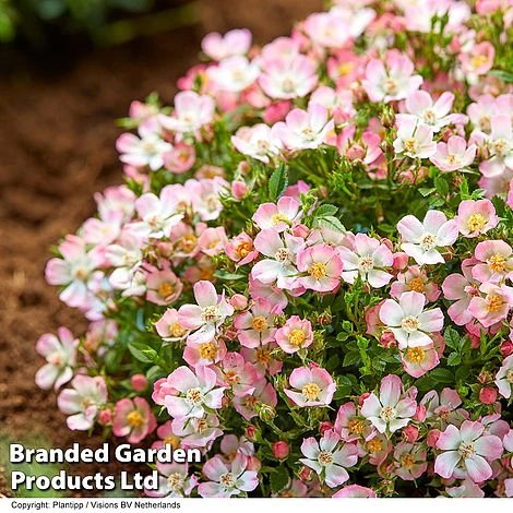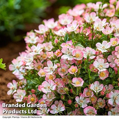 This adorable little rose is a recent introduction. At only 10cm high, Rosa ‘Cutie Pie’ is perfect as ground cover or for container growing. This completely thorn free rose forms dinky mounds which from July to September create a carpet of pink flowers like drifts of apple blossom. Absolutely charming. Height: 10cm (4”). Spread: 30cm (12”).