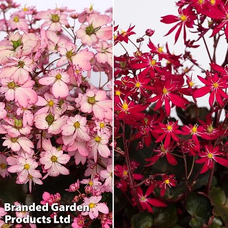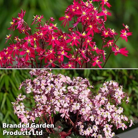Inject late season colour into shady corners with these gorgeous new Japanese woodland saxifrages. Years of dedicated breeding have resulted in the late flowering ‘Dancing Pixies’ series, which commence flowering in September and continue throughout autumn – offering colour just when you and the garden needs a lift. Masses of delicate, starry flowers with sparkling yellow centres dance above neat rosettes of deep green leaves, which set off the flowers beautifully. The dark, heavily scalloped leaves make this a a striking foliage plant even when not in flower.