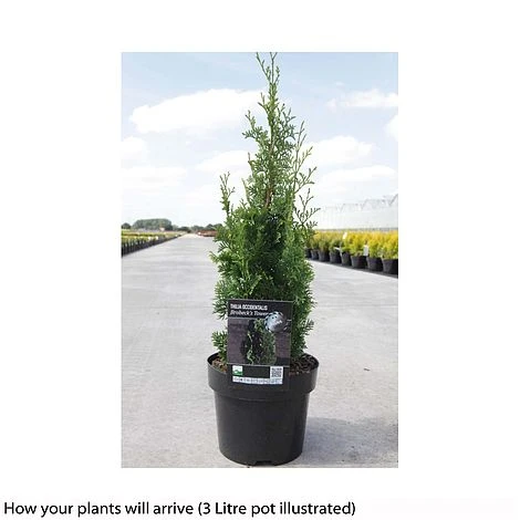 With its lush, flat green foliage, this conifer grows to form a neat conical bush, perfect for planting in a garden with limited growing conditions. Slow growing so will not become invasive or difficult to maintain. Ideal for planting in a window box in a sunny or partialy shaded location. Thuja occidentalis ‘Brobeck’s Tower’ is a tough plant that will grow in almost any soil or situation, requiring absolutely no maintenance and lasting for many years. Height: 2m (7′). Spread: 1m (3′).