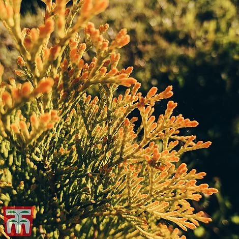 Thuja occidentalis ‘Golden Smaragd’ is a bright yellow-green version of ‘Smaragd’, turning a shade more golden during the winter. This slow growing conifer forms a conical, dense tree over time. Flushes of new spring growth show lovely yellow tinges, making a perfect focal point where a vertical feature is desired. This hardy evergreen also makes an excellent hedging plant either on its own, or perhaps inter-planted with the greener variety ‘Smaragd’ for a colour contrast. Height: to 5m (16′). Spread: to 1.7m (5′,6″).