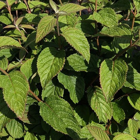 Viburnum plicatum f. tomentosum is well known for its spreading, tiered branches of heart shaped green foliage. This deciduous shrub is commonly named the Japanese Snowball Bush for its lacecap white flowers that appear from late spring to early summer in a magnificent, showy display. With the onset of Autumn the leaves turn to red and purple adding late season interest to garden borders. This large shrub makes a lovely addition to cottage gardens, woodland areas or as a stand-alone specimen. Height: 3m (10′). Spread: 2m (8′).