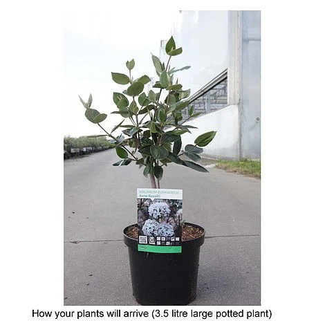 Scented clusters of tubular white flowers will greet you each morning in the spring, set against lush green foliage to make them stand out magnificently. Viburnum burkwoodii ‘Anne Russell’ is a semi evergreen shrub of medium size that can be grown as a specimen plant in the centre of a bed or border and can also be grown in a large container on the patio or in a position of prominence in your garden. Easy to grow and maintain, Viburnums are very hardy and usually thrive in all positions. Height: 150cm (59″). Spread: 150cm (59″).