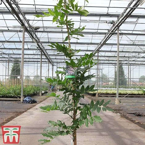 This elegant Silky Wisteria is so called for its downy leaflets along the main leaf stem. The long, pinnate leaves make a lovely backdrop for the lilac-pink, fragrant flowers that appear in late spring and early summer. Unlike the better know Chinese Wisteria, the individual flowers of this species are much larger, forming short, somewhat stumpy racemes – but equally showy. Wisteria brachybotrys ‘Showa-beni’ is a recent introduction with a distinctive yellow spot to the centre of each bloom. After flowering it forms bean-like seed pods which dangle from the branches. An excellent, vigorous climber for a large wall, or trained over a pergola. Height: to 12m (40′). Spread: 8m (26′). Supplied as a grafted plant.